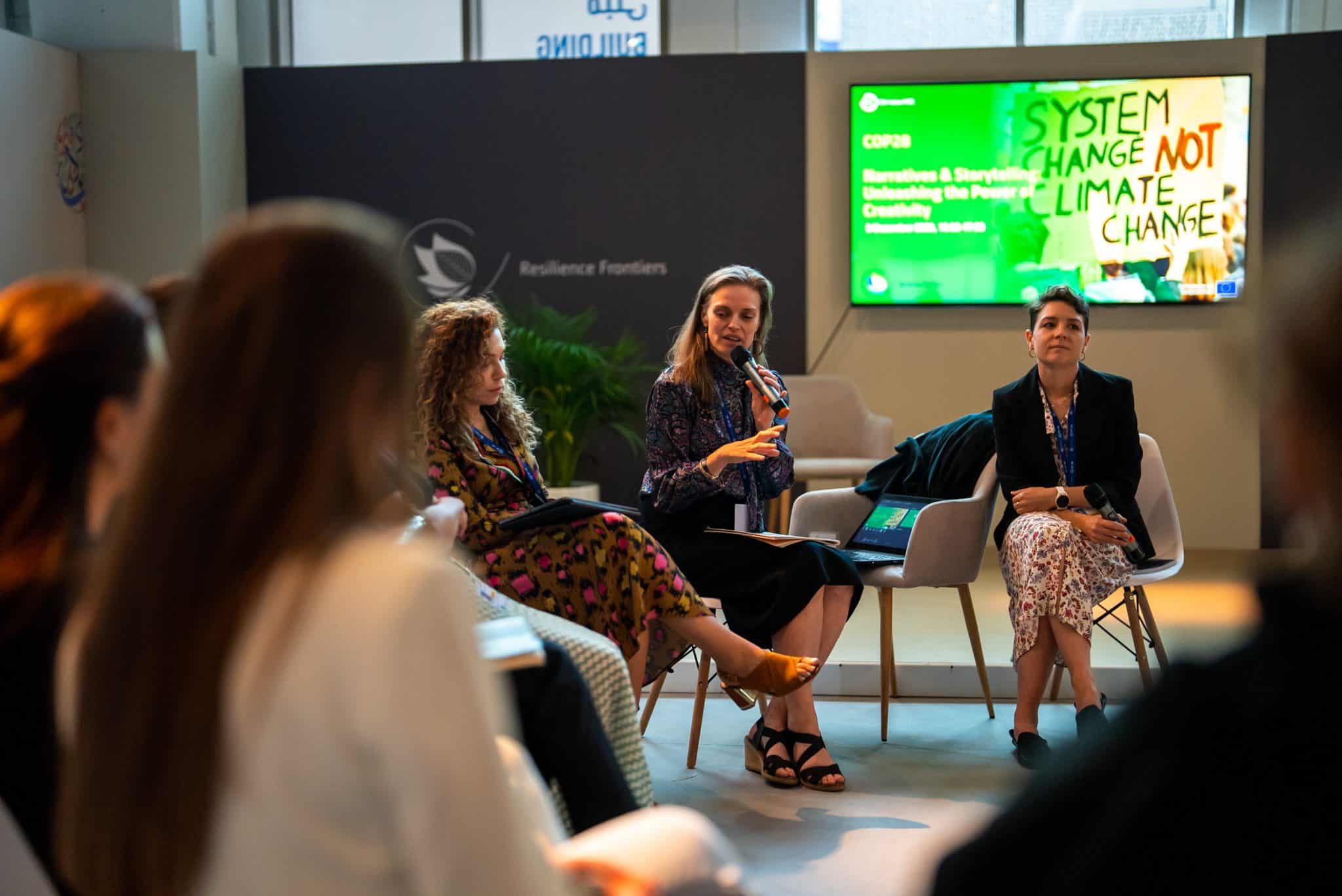 Meanwhile, EIT Climate-KIC’s Head of Learning, Solla Zophoniasdottir, was interviewed by the Resilience Frontiers team. The discussion centred on the role of climate narratives and storytelling. This conversation built upon the valuable insights derived from the EIT Climate-KIC-led workshop conducted on December 3rd. Zophoniasdottir emphasised, “Stories are the way we relate to one another.” You can watch the interview below for deeper insights.