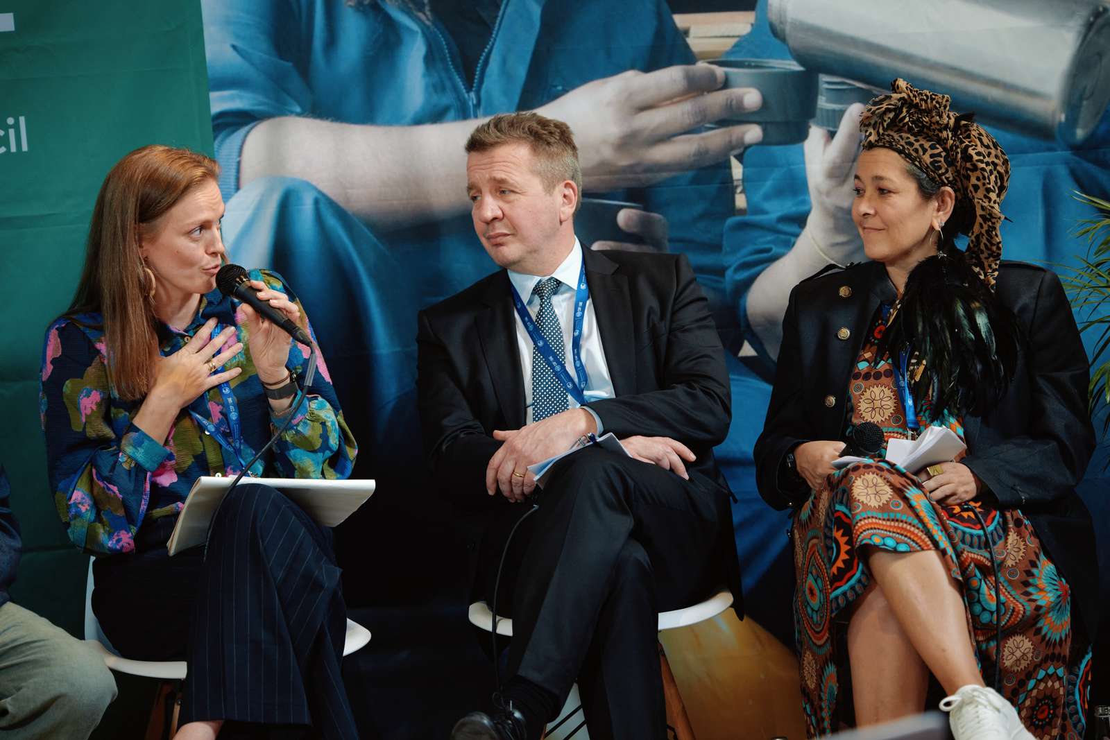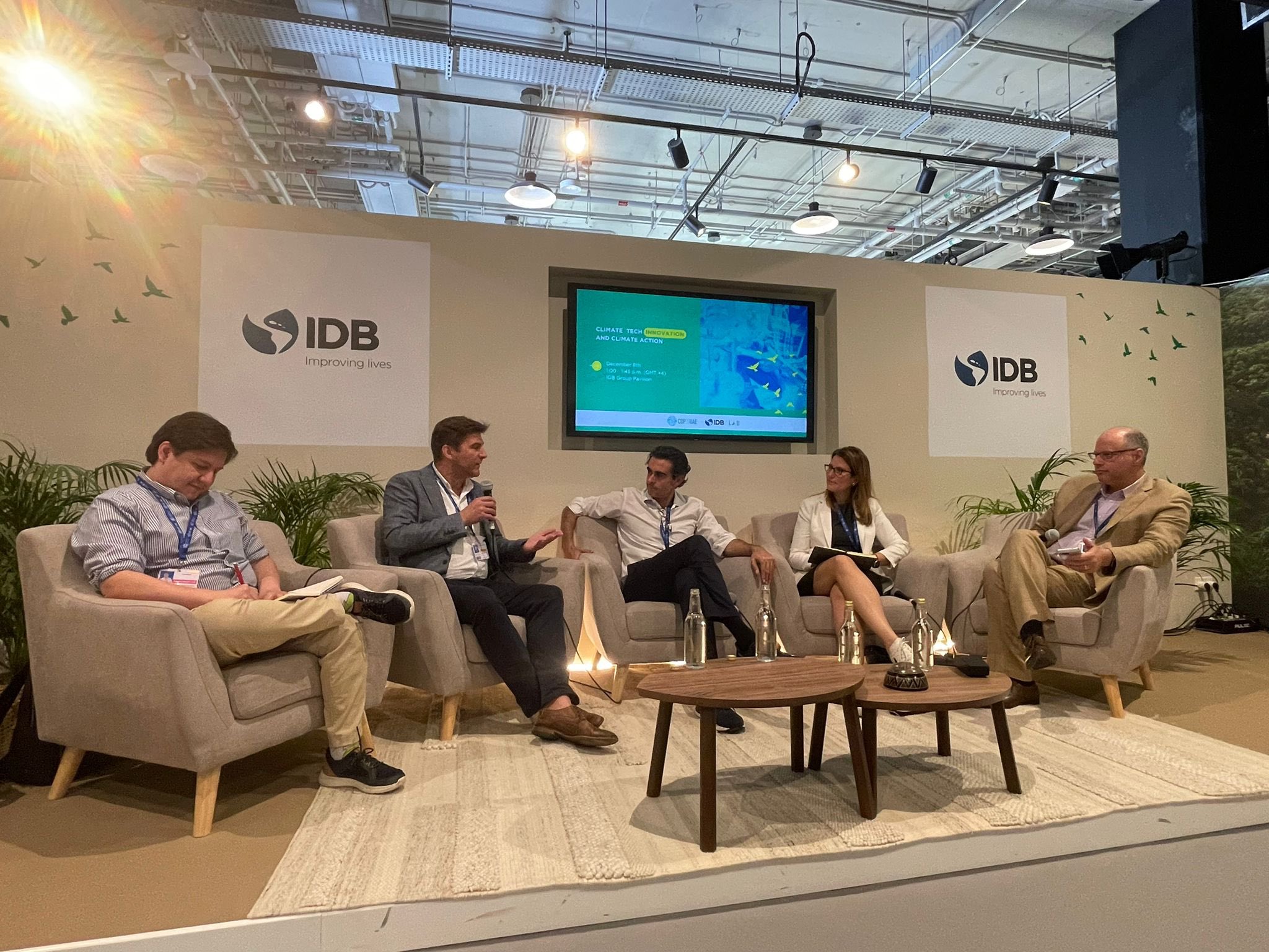 At the IDB Pavilion, EIT Climate-KIC Chief Strategy Officer, Andy Kerr was participating in a panel discussion on ey private sector climate tech innovations, especially solutions coming from the Latin American and Caribbean region. He said: “Not enough of these fantastic startups are scaling at the pace that we need. We are trying to take a much more systemic view, which requires radical collaboration”.